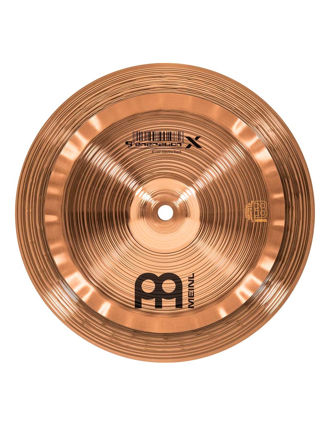 PLATO ESPECIAL 'Stack 8/10'' Electrostack. Serie Gen-X. Los platos la serie Gen-X se producen en Alemania sobre diferentes aleaciones. En el proceso intervienen varias técnicas, tanto de presión como de martilleado computerizado. Los acabados varían según el modelo imprimiendo a cada plato de una imagen espectacular y un sonido particular.