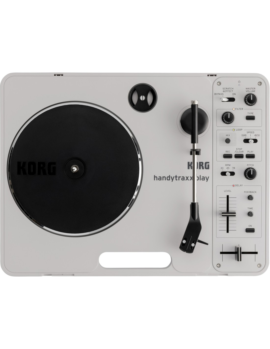 El handytraxx play es un tocadiscos portátil que te permite disfrutar de la reproducción de discos y actuar como DJ en cualquier lugar. Desarrollado en colaboración con Toshihide Nakama, expresidente de Vestax y cocreador del Handy Trax original, el handytraxx play conserva la esencia del original al tiempo que introduce nuevas y emocionantes funciones. Incluye efectos digitales de vanguardia, un looper integrado y controles de alta calidad que permiten ''tocar'' físicamente con los discos en cualquier lugar. Combinado con opciones de personalización únicas, el handytraxx play ofrece una experiencia de tocadiscos portátil inigualable.