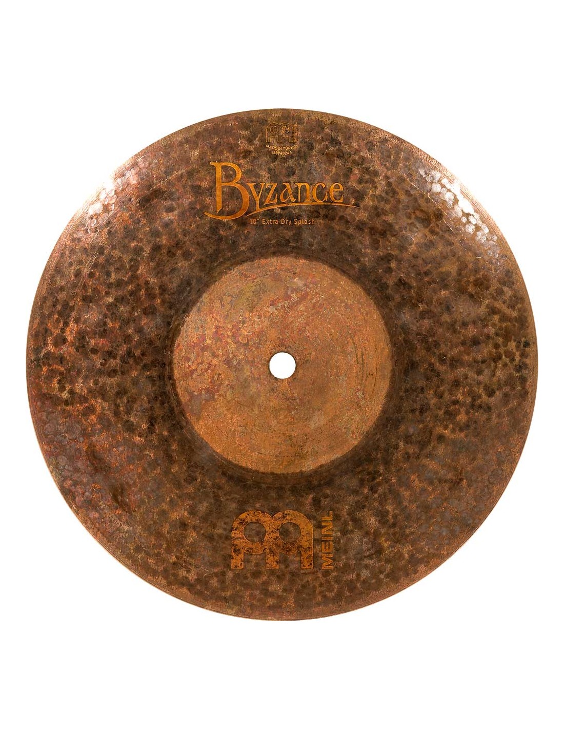 PLATO SPLASH 'Splash 10'', Serie Extra Dry. Los platos la serie Byzance Extra Dry están fabricados artesanalmente en nuentra fábrica de Turquía por las manos de especialistas y respetando la tradición en todo el proceso. Todos los platos están hechos a partir de galletas de aleación de bronce B20. En el proceso intervienen varias técnicas, tanto de martilleado como de torneado. El acabado superior sin tornear y con martilleados de mayor diámetro unido a la parte inferior del plato completamente torneado hace la seríe algo único. Con un sonido explosivo, un poco trashy y con poco sustain. Estos platos han creado un nuevo universo sonoro completamente único.