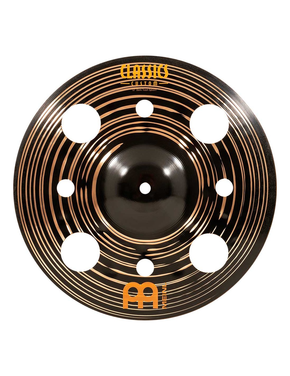 PLATO SPLASH Trash Splash 12'' Serie Classics Custom Dark. Los platos la serie Classics Custom Dark se producen mecánicamente en Alemania sobre una aleacion B10. En el proceso intervienen varias técnicas, tanto de presion como de martilleado computerizado. Además de ello tiene un acabado negro brillante que les infiere una imagen espectacular y un sonido particular.