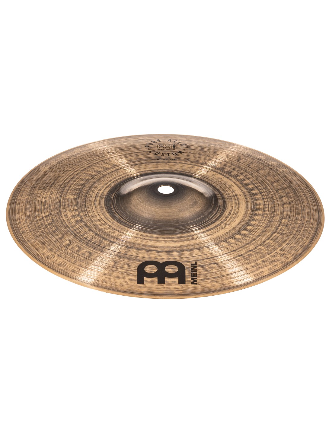 PLATO SPLASH 'Splash 10'', Serie Pure Alloy Custom. Los platos de la serie Pure Alloy Custom de Meinl reunen las caracterísitcas de los clásicos platos europeos pero con la articulación de un plato moderno. Con un martilleado pronunciado en su parte superior y completamente torneadosy brillanes en la inferior resultan expresivos y muy articulados. Estas características los hacen perfectos para muchos estilos musicales tales como el pop, rock, fusion, música etnica y todo lo que quede en medio.