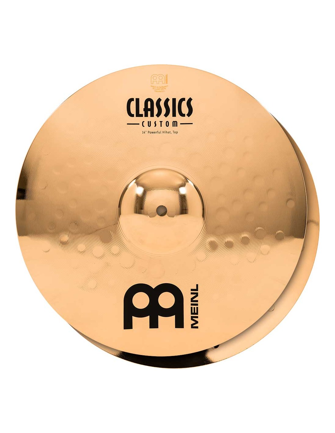 PLATOS DE CHARLES 'Hihat 14'' Powerful, Serie Classics Custom. Los platos la serie Classics Custom se producen mecánicamente en Alemania sobre una aleación B10. En el proceso intervienen varias técnicas, tanto de presión como de martilleado computerizado. Además de ello reciben un lacado brillante que les infiere un acabado brillante espectacular.