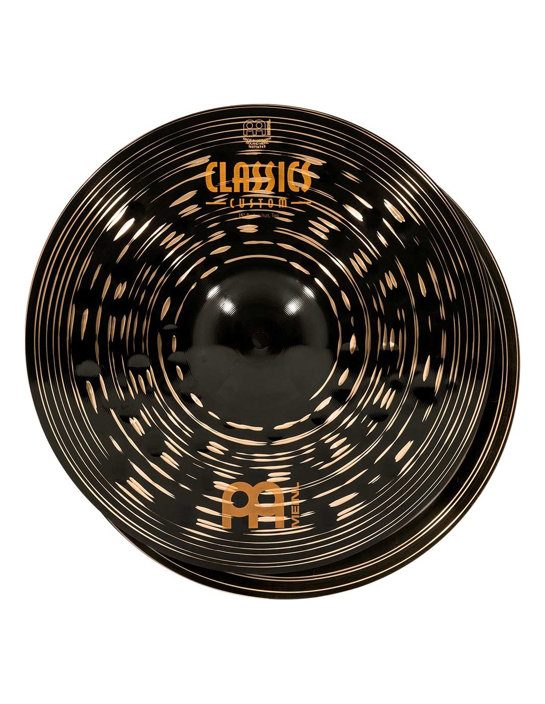 PLATOS DE CHARLES 'Hihat 15'' Serie Classics Custom Dark. Los platos la serie Classics Custom Dark se producen mecánicamente en Alemania sobre una aleación B10. En el proceso intervienen varias técnicas, tanto de presión como de martilleado computerizado. Además de ello tiene un acabado negro brillante que les infiere una imagen espectacular y un sonido particular.
