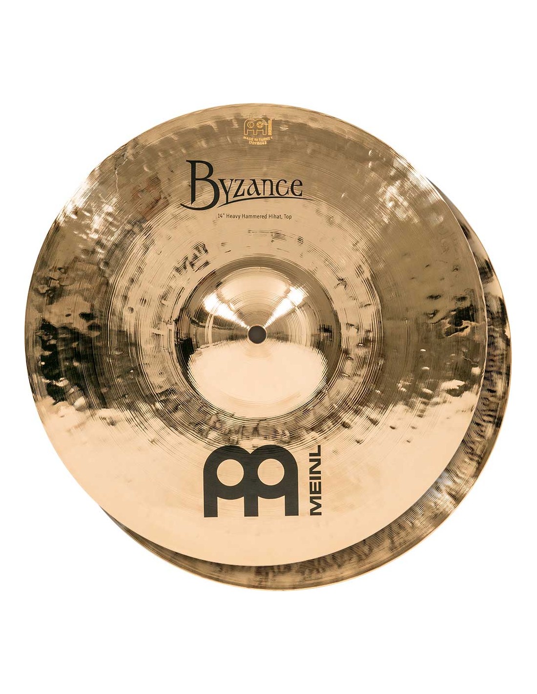 PLATOS DE CHARLES 'Hihat 14'' Heavy Hammered. Serie Byzance Brillante. Los platos la serie Byzance Brilliant están fabricados artesanalmente en nuentra fábrica de Turquía por las manos de especialistas y respetando la tradición en todo el proceso. Todos los platos están hechos a partir de galletas de aleación de bronce B20. En el proceso intervienen varias técnicas, tanto de martilleado como de torneado. Además de ello reciben un lacado brillante que les infiere un sonido más explosivo y un acabado brillante espectacular.