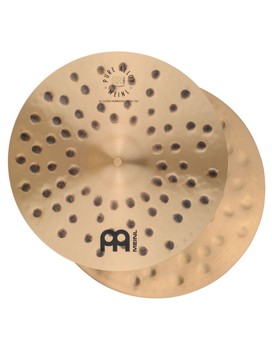 PLATOS DE CHARLES 'MEINL Pure Alloy Extra Hammered Hihat - 14''. Los hi-hats Pure Alloy Extra Hammered de 14'' presentan una parte superior y una inferior de grosor medio-fino con martilleo adicional. Preecualizados, ofrecen un ataque seco en las frecuencias medias-altas, lo que les da una voz clara y definida. Además, tienen un toque de chisporroteo y crujido en los graves, creando una rica calidez para una respuesta naturalmente comprimida. Abra el platillo superior para obtener ladridos fuertes y ciérrelo para un sonido seco. Completamente abiertos, ofrecen un wash robusto con mucho volumen y empuje.Serie: Pure Alloy Diámetro: 14'' Tipo: Hihat Material: Pure Alloy Modelado: Martilleo computarizado Estilo musical: Rock, Pop, Fusión, R&B, Reggae, Estudio Carácter: Brillante Claridad Sustain: Medio a corto Volumen: Medio a bajo Timbre: Medio-oscuro Tono: Alto-medio Peso: Medio-fino Torno: Preciso Acabado: Tradicional Hecho en: Alemania Para limpiar: Limpiador de platillos Meinl y protector de platillos Meinl'