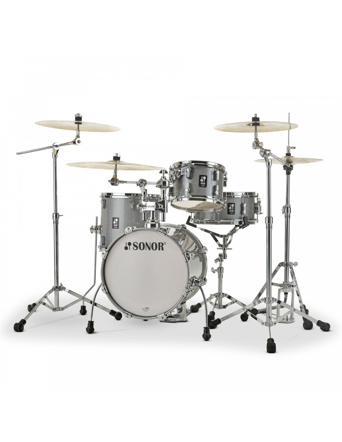 SET DE BATERIA ACUSTICA La serie AQ2 monta cascos de arce de 7 capas. Los toms incluyen el nuevo sistema Smart Mount que sujeta el casco por las bellotas, evitando la perforación del casco y permitiendo una resonancia más pura. El acabado es un precioso sparkle lacado en acabado Titanium Quartz con un granulado muy fino. El set no inclye platos.