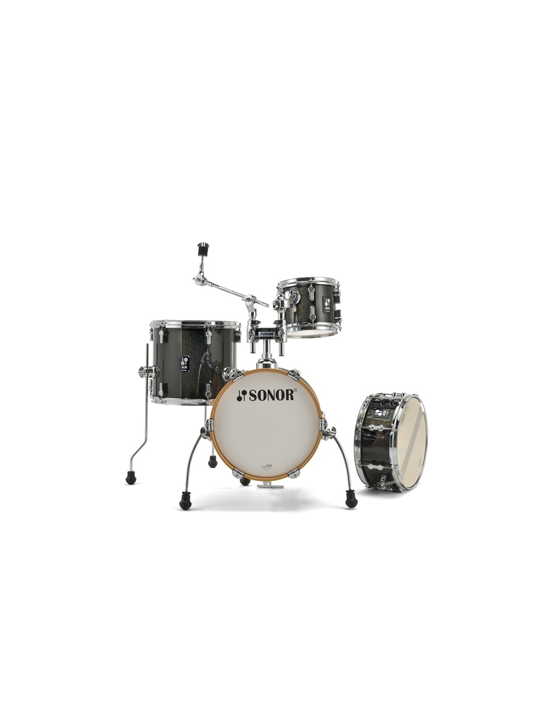 SET DE BATERIA ACUSTICA 'Set AQX Micro Set BMS Black Midnight Sparkle. La serie AQX están hechas en madera de Álamo bajo los estándares de diseño y calidad de terminación habituales de SONOR. Las baterías montan aros de madera en todos los bombos y las bellotas AQ están equipadas con nuestro famoso sistema ''Tune Safe'' que mantiene la afinación sea cual sea la posición de los tornillos. La caja también es de madera en todos los modelos. El modelo Micro lo forma bombo de 14 x 13, toms de 8 x 7, base de 13 x 12 y caja de 13 x 6. Incluye consola para tom y un plato modelo CTH 4000.'
