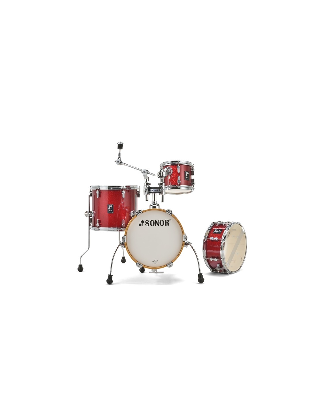 SET DE BATERIA ACUSTICA 'Set AQX Micro Set RMS Red Moon Sparkle . La serie AQX están hechas en madera de Álamo bajo los estándares de diseño y calidad de terminación habituales de SONOR. Las baterías montan aros de madera en todos los bombos y las bellotas AQ están equipadas con nuestro famoso sistema ''Tune Safe'' que mantiene la afinación sea cual sea la posición de los tornillos. La caja también es de madera en todos los modelos. El modelo Micro lo forma bombo de 14 x 13, toms de 8 x 7, base de 13 x 12 y caja de 13 x 6. Incluye consola para tom y un plato modelo CTH 4000.'