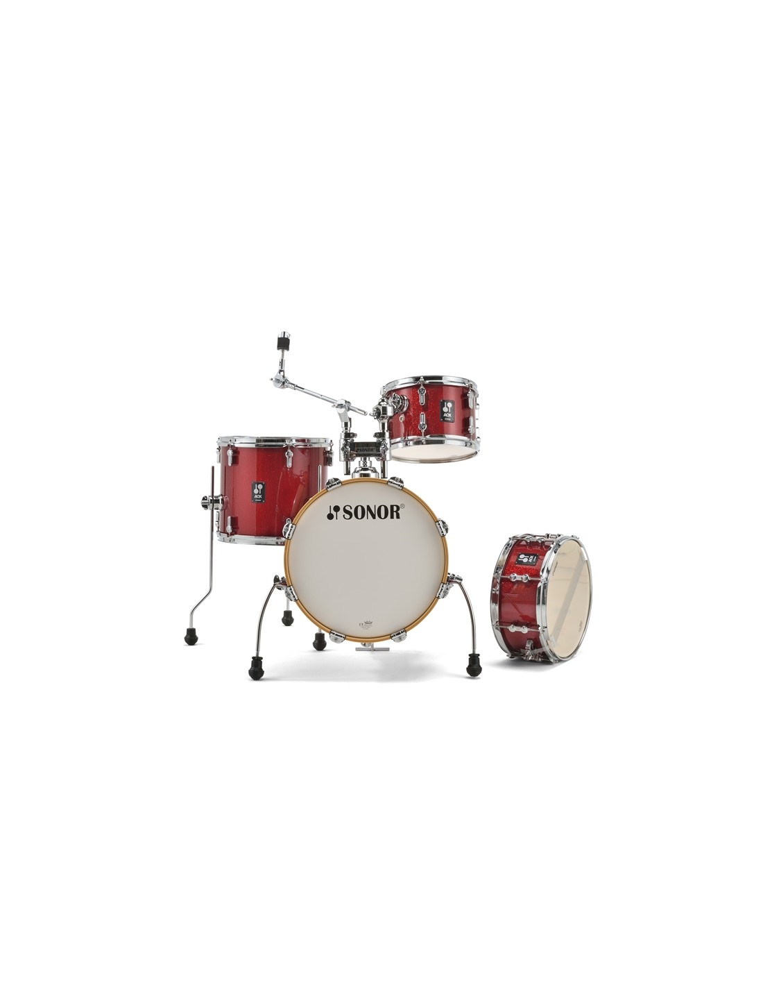 SET DE BATERIA ACUSTICA 'Set AQX Jungle Set RMS Red Moon Sparkle . La serie AQX están hechas en madera de Álamo bajo los estándares de diseño y calidad de terminación habituales de SONOR. Las baterías montan aros de madera en todos los bombos y las bellotas AQ están equipadas con nuestro famoso sistema ''Tune Safe'' que mantiene la afinación sea cual sea la posición de los tornillos. La caja también es de madera en todos los modelos. El modelo Jungle lo forma bombo de 16 x 15, toms de 10 x 7, base de 13 x 12 y caja de 13 x 6. Incluye consola para tom y un plato modelo CTH 4000.'