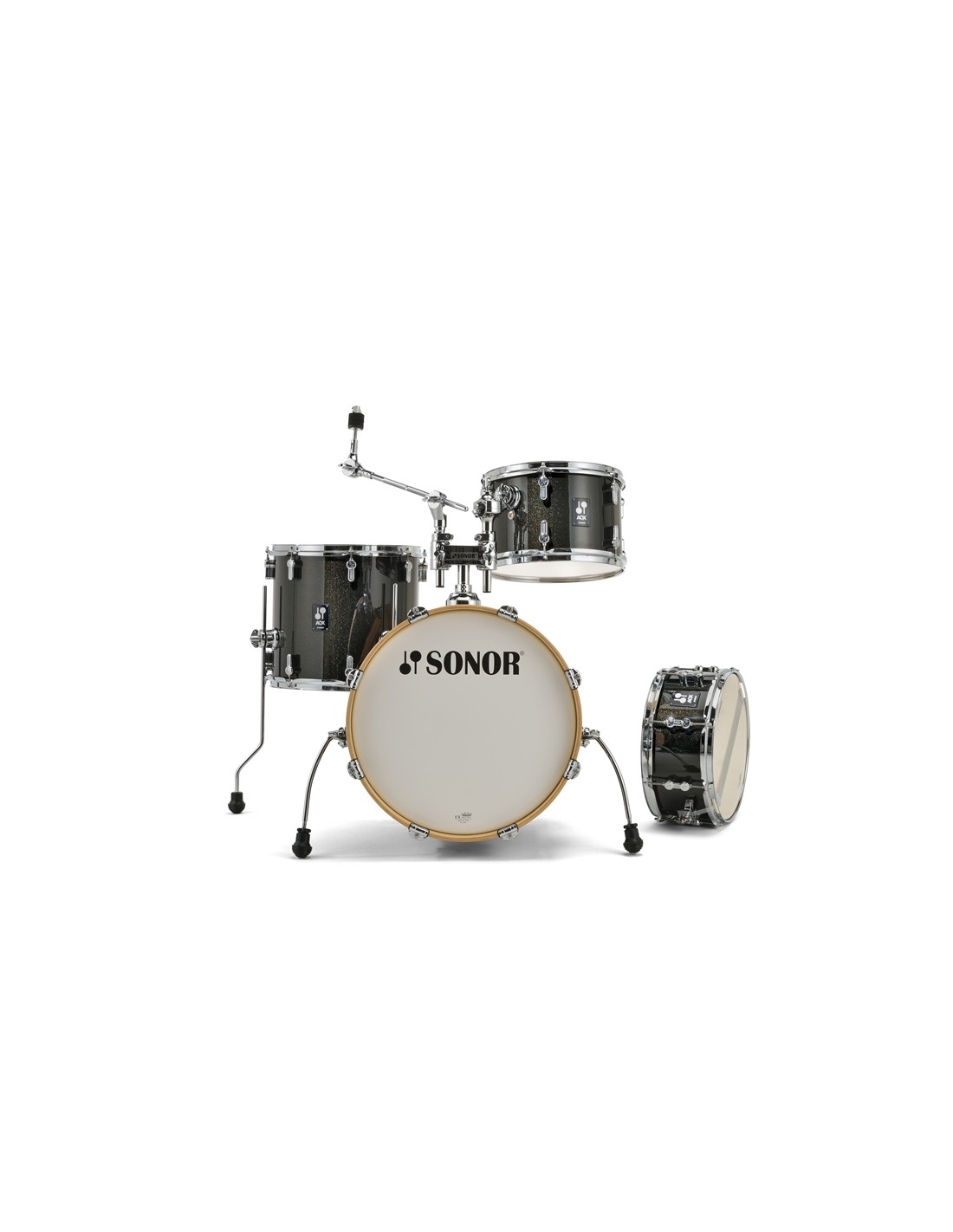SET DE BATERIA ACUSTICA 'Set AQX Jazz Set BMS Black Midnight Sparkle. La serie AQX están hechas en madera de Álamo bajo los estándares de diseño y calidad de terminación habituales de SONOR. Las baterías montan aros de madera en todos los bombos y las bellotas AQ están equipadas con nuestro famoso sistema ''Tune Safe'' que mantiene la afinación sea cual sea la posición de los tornillos. La caja también es de madera en todos los modelos. El modelo Jazz lo forma bombo de 18 x 14, toms de 12 x 8, base de 14 x 13 y caja de 13 x 6. Incluye consola para tom y un plato modelo CTH 4000.'