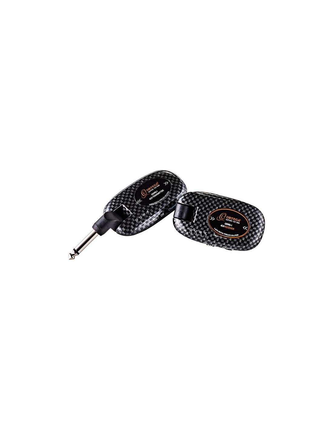 SISTEMA WIRELESS: GUITARRA Y BAJO ODWS-1CAR Sistema inalambrico digital para instrumentos activos o pasivos. Acabado CARBON, estilo fibra de carbono. Trabaja a 2,4 GHz ISM sin interferencias a nivel mundial. Hasta 30 metros de covertura inalambrica sin perdida de señal. Con batería en receptor y emisor recargable vía cable USB standard. Hasta 5 horas de autonomía. 4 canales seleccionables mediante 4 luces LED. Canales conmutables mediante sencillo sistema de letras. Permite utilizarse conjuntamente junto a otros 3 sistemas ODWS-1 con un total de 4 sistemas simultáneos. Transmisión digital a 24 bits / 48 kHz libre de compresión. Funcionamiento ``plug and play´´. Sistema de auto stand by cuando no detecta señal durante mas de 10 segundos. Opción de operar con un solo transmisor y varios receptores al mismo tiempo. Jack articulado con giro de 225º. INCLUTE 1 EMISOR, 1 RECEPTOR Y UN CABLE DE CARGA USB DOBLE.