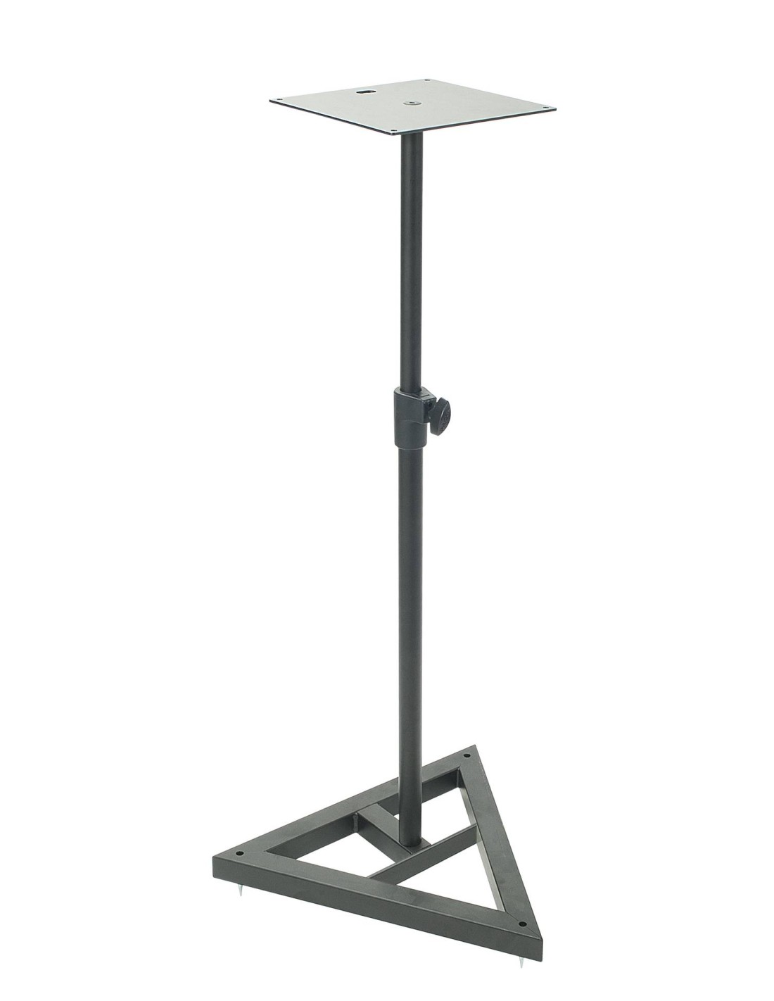 SOPORTE PARA ALTAVOZ (ESTUDIO) Soporte de monitor Proel KP840. Soporte con base triangular para monitor de campo cercano. Incluye picos cónicos para permitir el aislamiento del suelo. Estructura de tubo de acero, sistema de altura ajustable de 850 mm a 1170 mm (cinco posiciones diferentes) con pasador de seguridad. Tamaño de la placa superior 230 mm x 230 mm. Perfecto para uso doméstico y estudios de grabación.