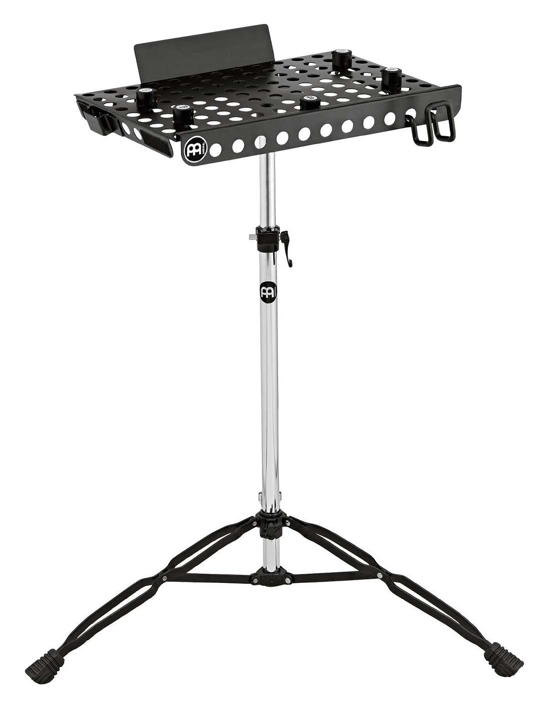 SOPORTE PARA LAPTOP O CONTROLADORA 'Soporte para Ordenador Portátil TMLTS. El soporte para ordenador puede alojar portátiles de hasta 17 ''. Trae topes y correas de sujeción de velcro que fijan el equipo a la mesa, para asegurar el portátil, y un soporte para auriculares. El Meinl TMLTS mide 56,9 cm de alto con una placa superior de 20 cm x 30 cm. La placa de metal perforada asegura que el portátil tenga siempre una buena ventilación.