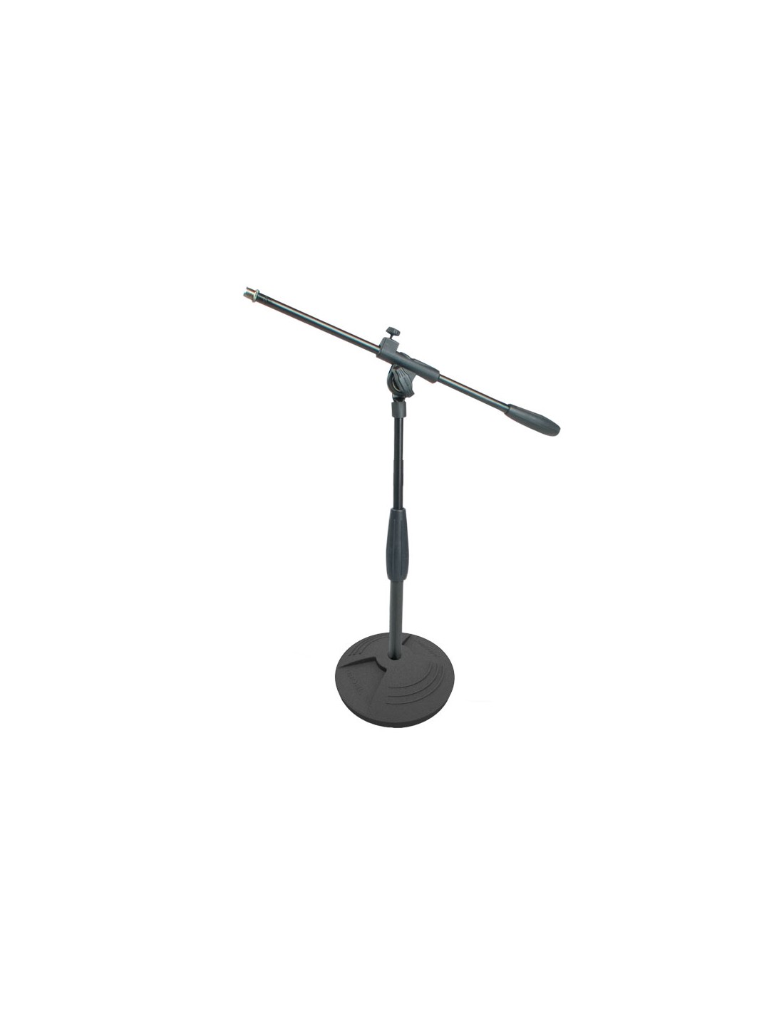 PIE DE MICRÓFONO SOBREMESA Pie de micrófono Proel DST140BK. Soporte de micrófono bajo con brazo fijo. Base de hierro fundido con goma anti-vibración. Altura máx: 435 mm. Alturamin: 305 mm. Peso: 2,2 Kg.