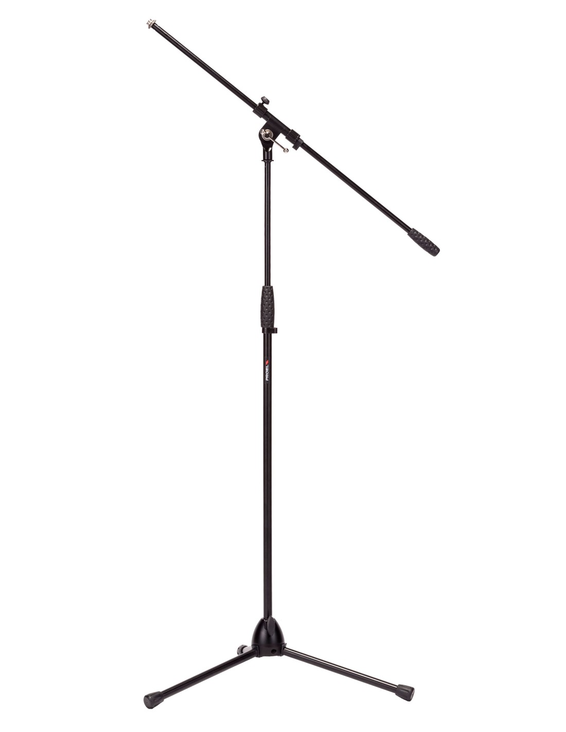 SOPORTE PARA MICROFONO (JIRAFA) Pie de micrófono Proel RSM195BK. Soporte de micrófono profesional con brazo fijo. Con articulación giratoria de acero y base trípode de hierro fundido fundido, sistema de em- brague y contrapeso. Altura máx: 1580 mm. Altura min: 975 mm. Peso: 2,2 Kg.