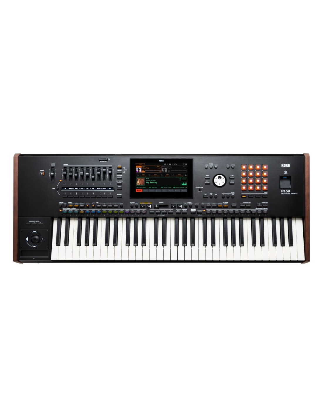 TECLADO DE ACOMPAÑAMIENTO SIN ALTAVOCES 'Pa5X es el nuevo buque insignia de la gama de teclados de arreglos profesionales KORG, que redefine el teclado de acompañamientos automáticos. Completamente rediseñado con un motor de sonido de última generación y una interfaz de usuario racionalizada y orientada al color, Pa5X produce una experiencia sonora increíblemente rica y única que te inspira a crear e interpretar.Pa5X viene repleto de miles de inspiradores sonidos y cientos de nuevos estilos, todos ellos accesibles al instante a través de un atractivo flujo de trabajo. Un panel frontal completamente nuevo que incluye una matriz de pads y una sección de mezclador asignables, botones LED multicolor y una enorme pantalla táctil inclinable le permite controlar su experiencia musical en todo momento. El Pa5X sobresale tanto como instrumento de actuación en directo como de potente herramienta creativa en el estudio, permitiéndole encontrar su sonido ideal sin importar dónde le lleve su música.Características principales:- Calidad superior y diseño elegante- Interfaz de usuario moderna y optimizada- Motor de sonido increíblemente rico: EDS-XP- Controladores en tiempo real- Reconocimiento avanzado de acordes y una biblioteca llena de secuencias de acordes- Transición suave entre sonidos, estilos y canciones- Dos reproductores cruzados capaces de mezclar todo: Estilos a archivos Midi, o archivos Midi a archivos MP3, o Estilos a Estilos (exclusivo del Pa5X)- Cada reproductor muestra la letra y la partitura- Cree sus propios estilos y canciones- SongBook, una biblioteca de música siempre contigo- Una completa biblioteca de sonidos- Mezclador a bordo con efectos de inserción, master, final y de masterización- Entradas para micrófono y guitarra con efectos dedicados para cada una- Conectores MIDI, USB, HDMI, de entrada y salida de audio y de pedal- Formatos de archivo estándar- Elementos incluidos: cable de alimentación de CA, atril, manual de instucciones (guía rápida)- Accesorios opcionales: altavoz PAAS, soporte ST-SV1-BK, pedales de control EXP-2, XVP-20 y DS-1H- Dimensiones (ancho x fondo x alto) (sin atril, pantalla totalmente bajada):Pa5X-61: 1.021,1 x 374,3 x 126,8 mm / 40,20'' x 14,73'' x 4,99''PaAS (opcional): 980 x 180 x 140 mm / 38,58'' x 7,08'' x 5,51''Peso:Pa5X-61: 15,1 kg / 33,29 lbs'