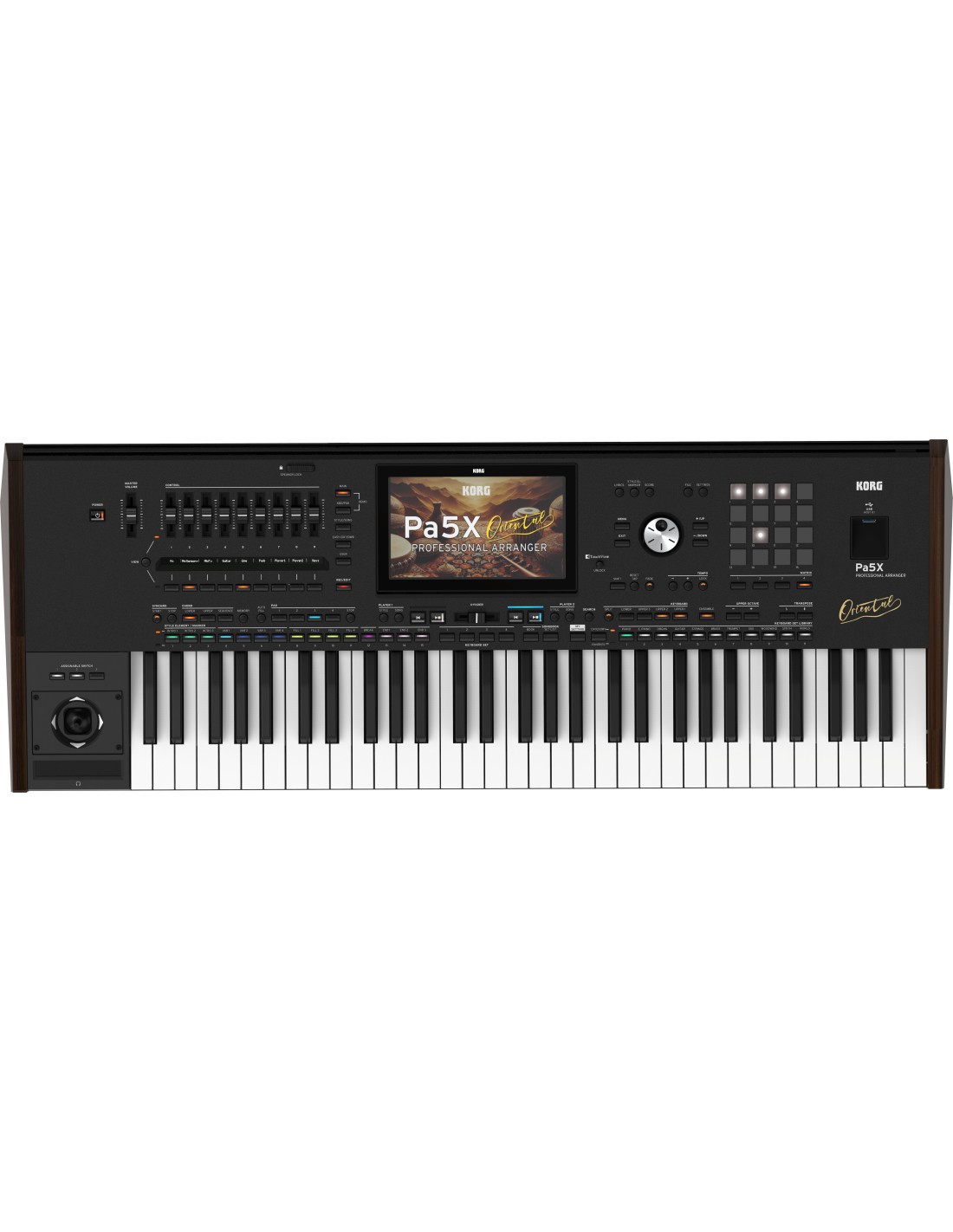 TECLADO DE ACOMPAÑAMIENTO SIN ALTAVOCES Pa5X ORIENTAL es el último modelo de la gama de teclados arreglistas profesionales Pa5X de KORG. Completamente rediseñado con un motor de sonido de última generación y una interfaz de usuario optimizada basada en colores, el nuevo Pa5X produce una experiencia sónica asombrosamente rica y única que te inspira para crear e interpretar.Ahora, el PA5X ORIENTAL lleva toda la potencia del Pa5X a los mundos musicales de Turquía y Oriente Medio. Sea cual sea la música que vayas a tocar, desde la occidental a la oriental -árabe, persa, turca-, el Pa5X ORIENTAL cumple.Características destacadasLa versión ORIENTAL añade sonidos, kits de pilas o baterías NO incluidas los conjuntos GM y XG844 Estilos de fábrica (630 Pa5X estándar + 264 Estilos orientales)768 ubicaciones de Sonido de usuario y 384 de Kit de batería de usuario con funciones de edición completasCalidad superior y diseño eleganteInterfaz de usuario moderna y optimizadaMotor de sonido asombrosamente rico: EDS-XPControladores en tiempo realReconocimiento avanzado de acordes, y una librería llena de secuencias de acordesTransición suave entre Sonidos, Estilos y CancionesDos reproductores con cross-fading capaces de mezclarlo todo: de estilos a archivos Midi, o de archivos Midi a archivos MP3, o de estilos a estilos (exclusivo del Pa5X)Cada reproductor muestra la letra y la partituraCrea tus propios Estilos y CancionesSongBook, una librería musical siempre contigoUna completa librería de sonidosMezclador integrado con efectos de inserción, master, final y masterizaciónEntradas para micrófono y guitarra con efectos dedicados para cada unaMIDI, USB, HDMI, entrada y salida de audio, conectores de pedalFormatos de archivo estándarDimensiones: 1,021.1 x 374.3 x 126.8 mmPeso: 15,1 kg.Sistema de amplificación Pa opcional PaAS MK2