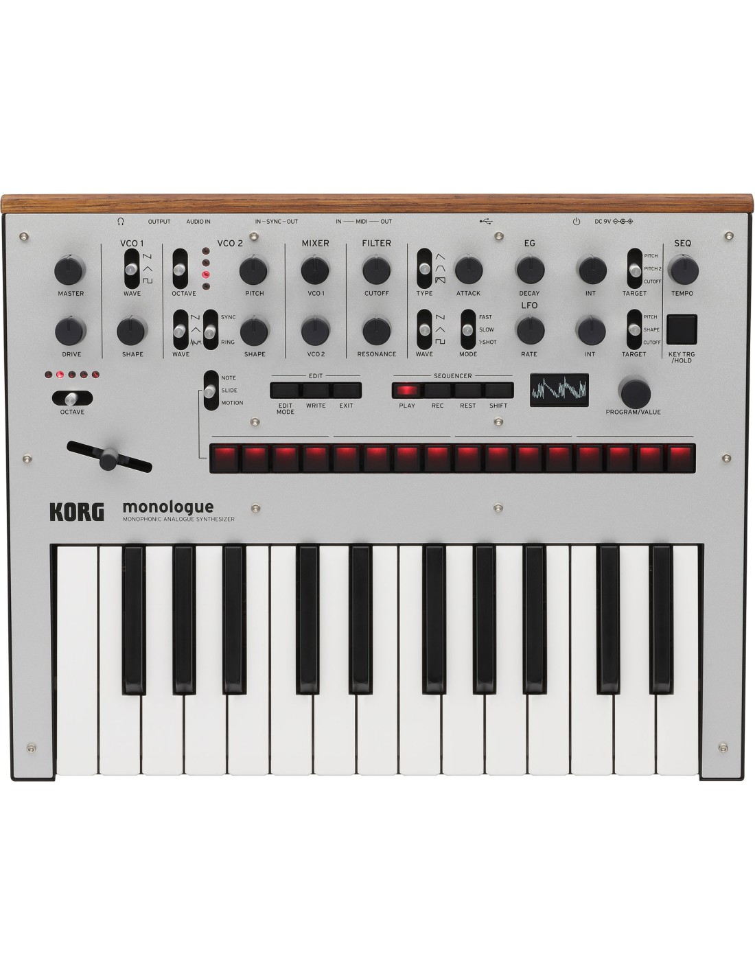 TECLADO SINTETIZADOR PROFESIONAL Potente sintetizador analógico monofónico basado en el minilogue. 25 teclas, 100 programas, nuevo VCF de 2 polos, función DRIVE, nuevo LFO con más rango de frecuencia y profundidad, secuenciador de 16 pasos con 16 botones directos en el panel frontal, modo Micro-tuning desarrollado en colaboración con Aphex Twin. Disponible en 5 acabados: Silver, Black, Blue, Gold y Red.