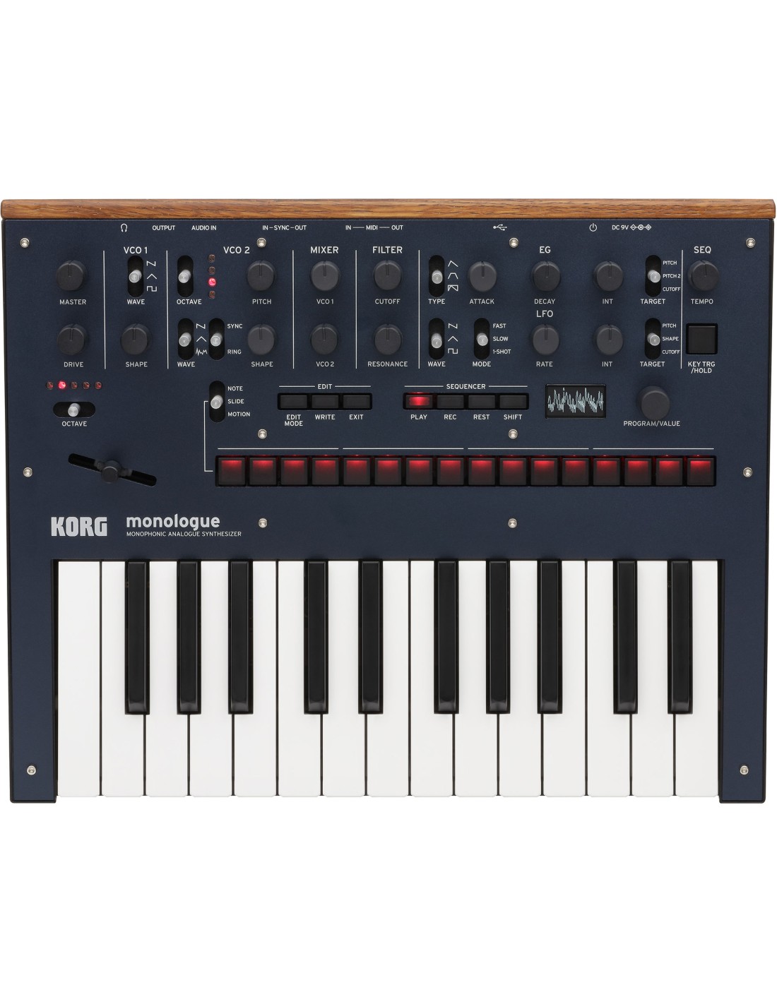 TECLADO SINTETIZADOR PROFESIONAL Potente sintetizador analógico monofónico basado en el minilogue. 25 teclas, 100 programas, nuevo VCF de 2 polos, función DRIVE, nuevo LFO con más rango de frecuencia y profundidad, secuenciador de 16 pasos con 16 botones directos en el panel frontal, modo Micro-tuning desarrollado en colaboración con Aphex Twin. Disponible en 5 acabados: Silver, Black, Blue, Gold y Red.