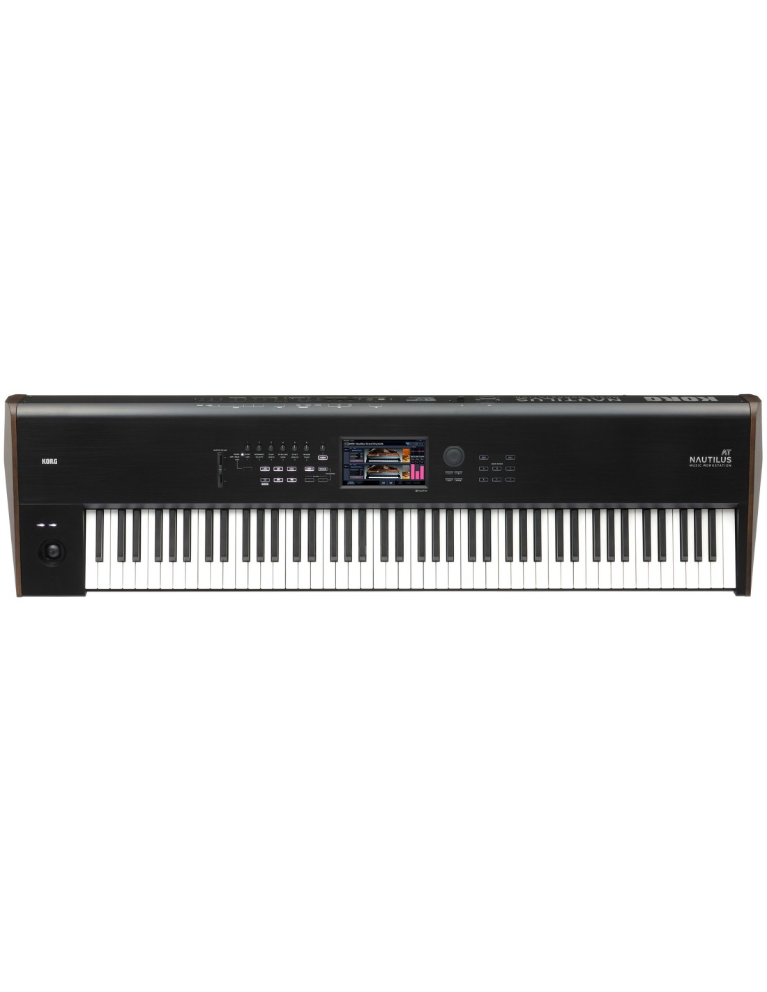 NAUTILUS AT es el Workstation más avanzado de KORG, que hereda las prestaciones del exitoso KRONOS y añade el Aftertouch para ofrecer una mayor expresión musical. Con una librería de sonidos optimizada, NAUTILUS AT permite disfrutar de los efectos del Aftertouch en los programas predefinidos sin necesidad de configuraciones adicionales. El Aftertouch, junto con la respuesta del teclado y el control DYNAMICS, ofrece un amplio espectro de matices sonoros en un solo instrumento. Así, es posible explotar al máximo los nueve motores de sonido y las numerosas funciones de NAUTILUS.Características principales:- Teclado contrapesado RH3 (Real Weighted Hammer Action 3) de 88 teclas con respuesta a la velocidad y Aftertouch- Nueve motores de sonido diferentes que ofrecen un increíble potencial expresivo- Nuevos sonidos disponibles en tres amplias categorías- El mando DYNAMICS permite una delicada expresividad- Realiza cambios intuitivos en los sonidos con los mandos en Tiempo Real- Una interfaz de usuario diseñada para un funcionamiento sencillo- Útiles funciones de arpegiador y pista de batería- Pantalla TouchView en color- El modo Set List demuestra todo su potencial en interpretaciones en directo- Sistema de Sampling Abierto- Secuenciador MIDI de 16 pistas / Grabador de Audio de 16 pistas- 16 Procesadores de Efectos Incorporados- Los puertos USB/ MIDI Host permiten usar superficies de control MIDI- Las transiciones suaves de sonido eliminan los cortes al cambiar los sonidos, independientemente del modo en el que estés- Dimensiones 88 teclas: 1,437 x 387 x 139 mm- Peso: 23,1 kg- Elementos incluidos: cable AC, guía rápida