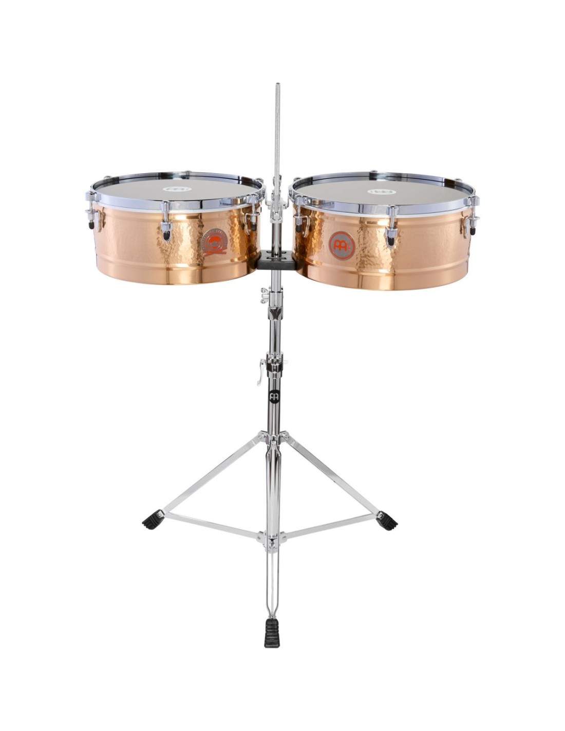 TIMBAL 'MEINL Percussion Artist Series Patricio ''El Chino'' Diaz Signature Timbales de 14'' y 15'' - Bronce. Elaborados en colaboración con el reconocido timbalero cubano Patricio ''El Chino'' Díaz, estos timbales exclusivos están diseñados para ofrecer el rango dinámico y la claridad tonal necesarios para la música afrocubana, tanto tradicional como contemporánea. Los cascos de bronce producen un sonido cálido y resonante con una proyección excepcional, lo que los hace ideales tanto para presentaciones en vivo como para grabaciones de estudio.Artista: Patricio El Chino Díaz Característica 1: Logotipo aplicado debajo del parche Color: Bronce Diámetro: 14'' y 15'' Material: Bronce Parche: Parches sintéticos transparentes Sonido: Sonido clásico de cáscara Herrajes: Herrajes cromados Hecho en: Tailandia Incluye: Soporte profesional para timbal, soporte ajustable para cencerro, bolsa de accesorios, llave de afinación en forma de L, aceite de afinación'