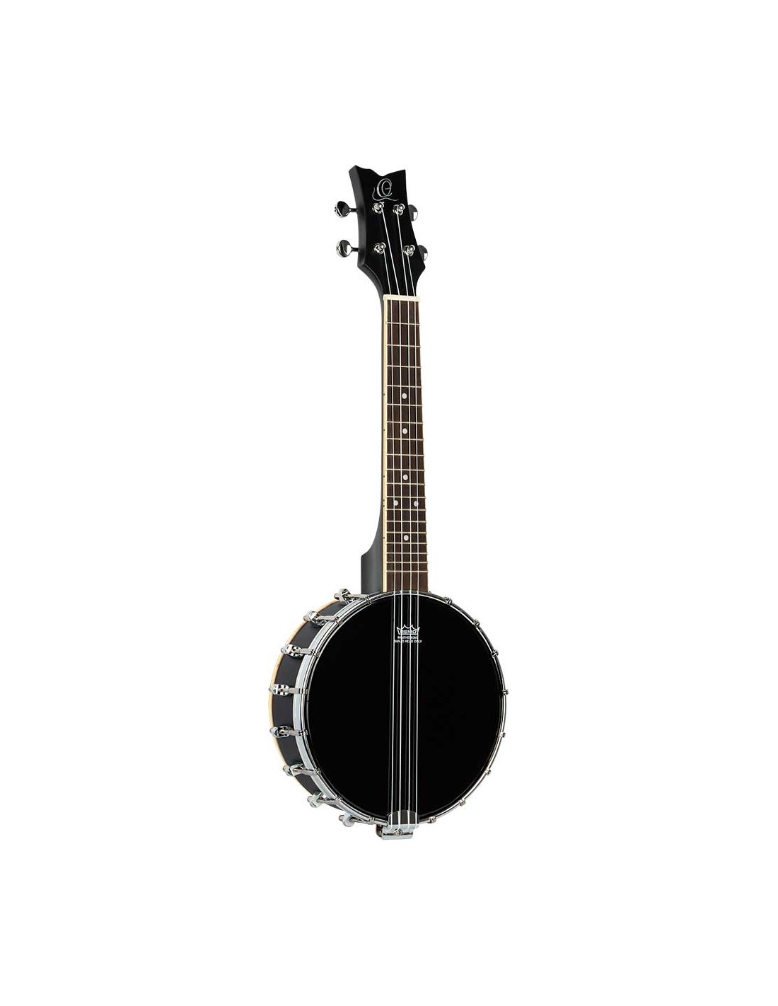 UKELELE ESPECIAL Banjo -ukelele. Ukelele tamaño concierto con cuerpo de banjo que mezcla el sonido de ambos instrumentos. Fabricado en arce, con herrajes cromados, acabado negro satinado y trasera cerrada.