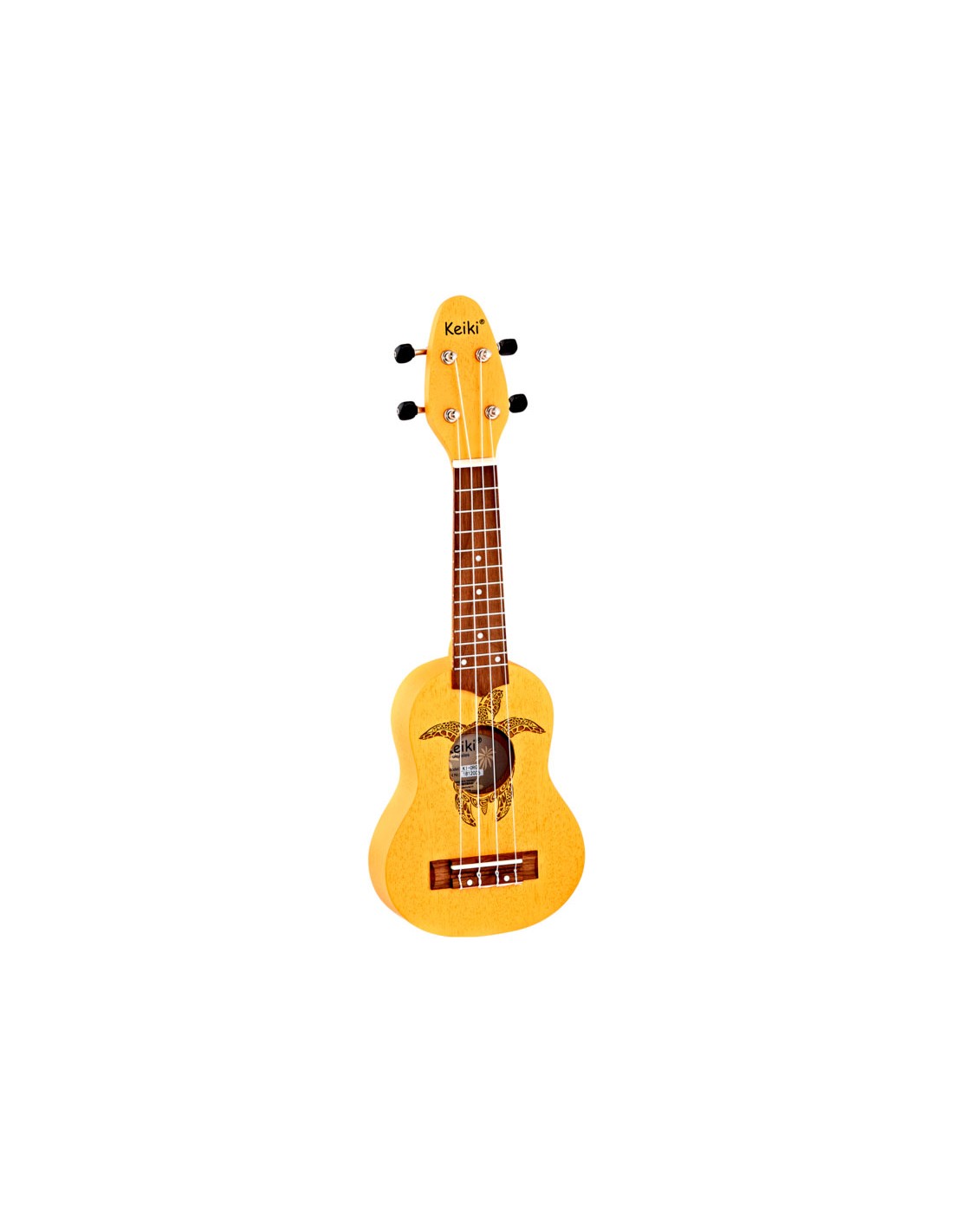 UKELELE SOPRANINO Ukelele Sopranino Keiki K1-MM. (mas pequeño que el soprano, escala 248mm). Acabado satinado en color naranja. Cuerpo y mástil de okoume, diapasón y puente de nogal. Tapa de okoume grabada a laser con diseño ``tortuga´´. Clavijeros cromados y negros. Monta cuerdas Ortega UWNY-4-SO para Soprano standard.