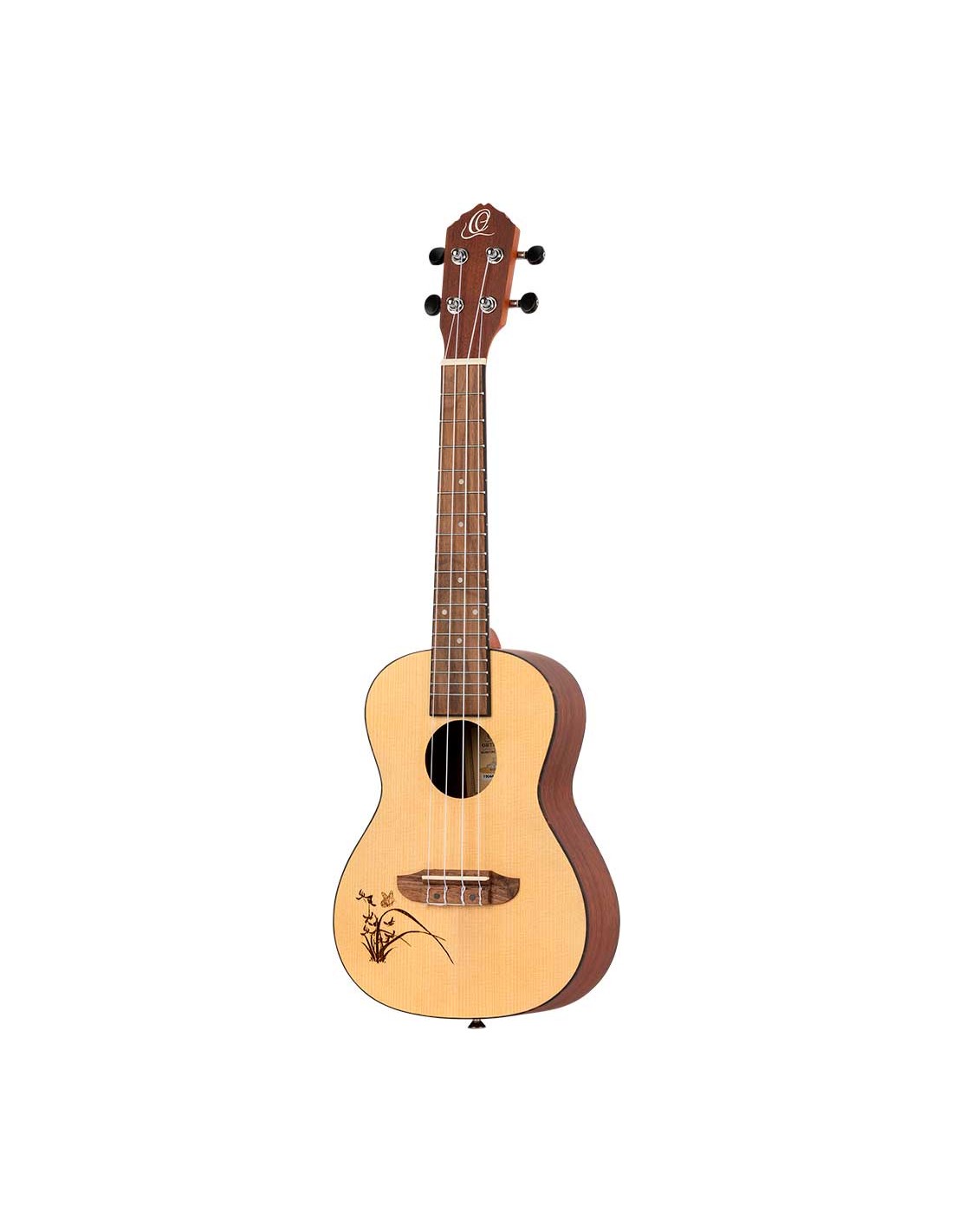 UKELELE ZURDO Ukelele ZURDO tamaño concierto. Tapa de abeto, aros y fondo de sapele. Mástil de caoba, diapasón de Sonokelin. Clavijero diecast