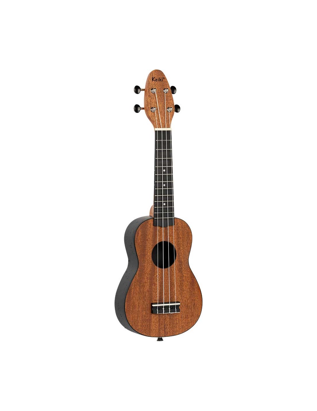UKELELE SOPRANO Pack de Ukelele soprano + afinador + correa + puas + bolsa de transporte. Ukelele con diapasón puente y trasera redondeada de fibra. Tapa de madera Caoba.