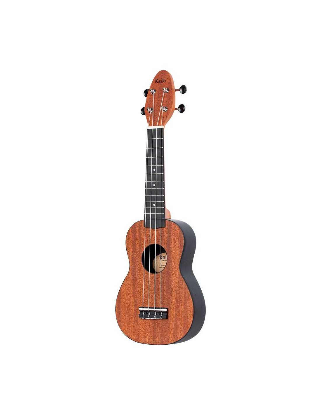 UKELELE ZURDO Pack de Ukelele soprano ZURDO + afinador + correa + puas + bolsa de transporte. Ukelele con diapasón puente y trasera redondeada de fibra. Tapa de madera Caoba.
