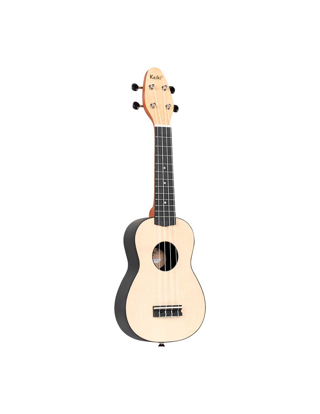 UKELELE SOPRANO Pack de Ukelele soprano + afinador + correa + puas + bolsa de transporte. Ukelele con diapasón puente y trasera redondeada de fibra. Tapa de madera de arce.
