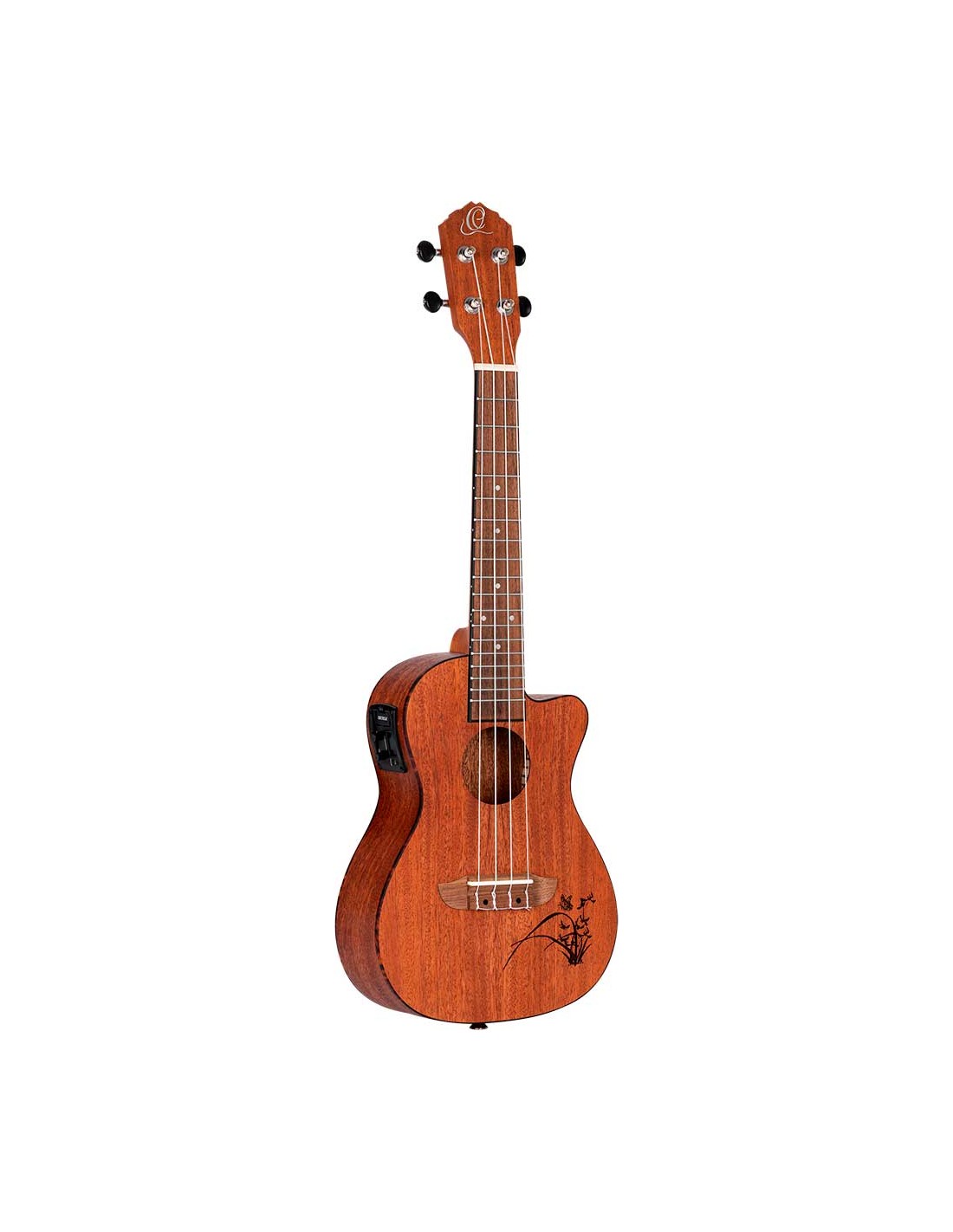 UKELELE CONCIERTO Ukelele tamaño concierto, eletrificado y con cutaway. Tapa , aros y fondo caoba. Mástil de caoba, diapasón de Sonokelin. Clavijero diecast