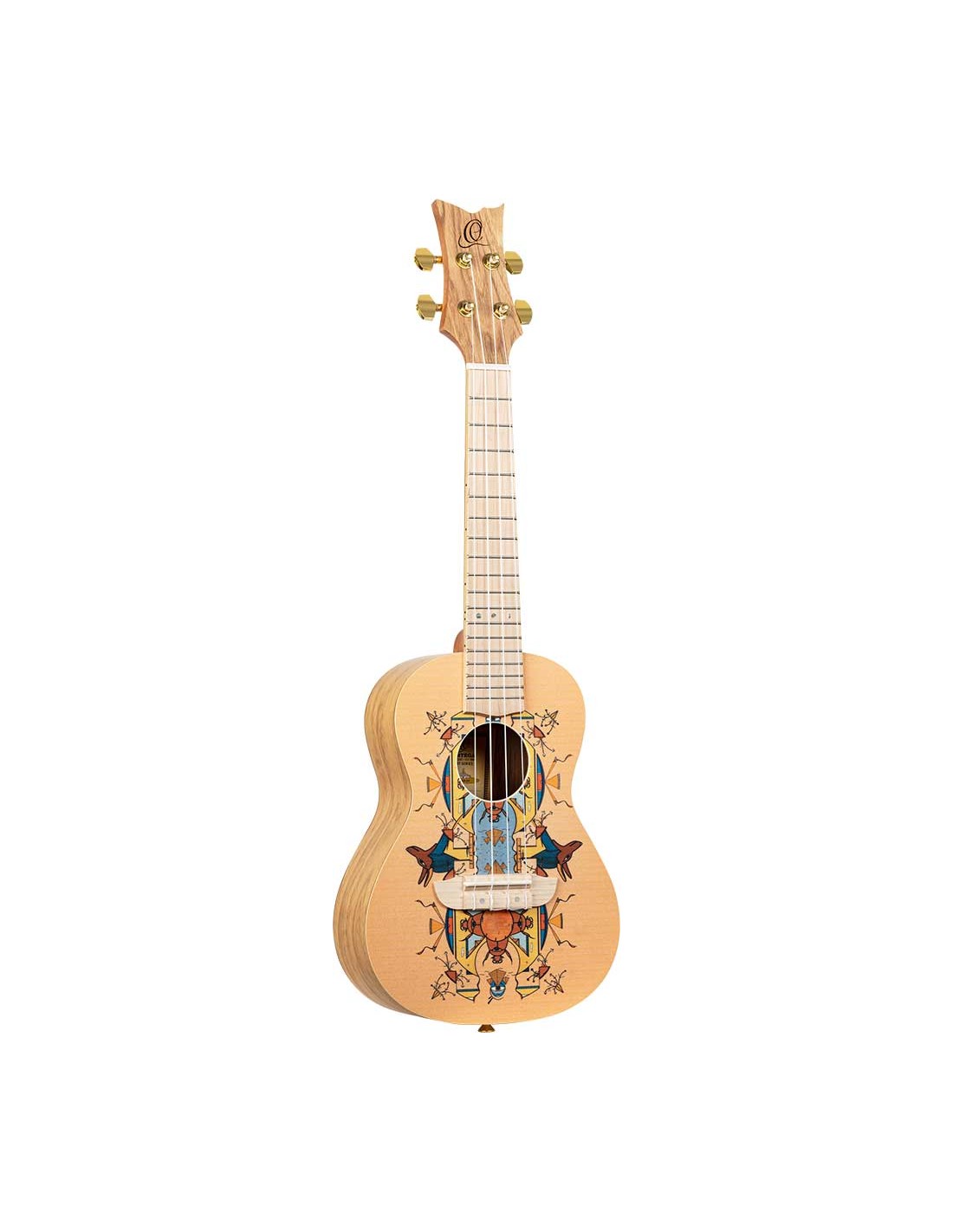 UKELELE CONCIERTO Todos nuestros ukeleles de la serie Art cuentan con materiales de alta calidad y un diseño atractivo en la parte superior. El cuerpo está hecho de catalpa, equipado con un mástil de arce. El hardware dorado completa la impresionante apariencia de estos hermosos instrumentos. El RUAR-BI viene con diseño de 'pájaros', 'egipto', 'india mística' e 'himalaya'.