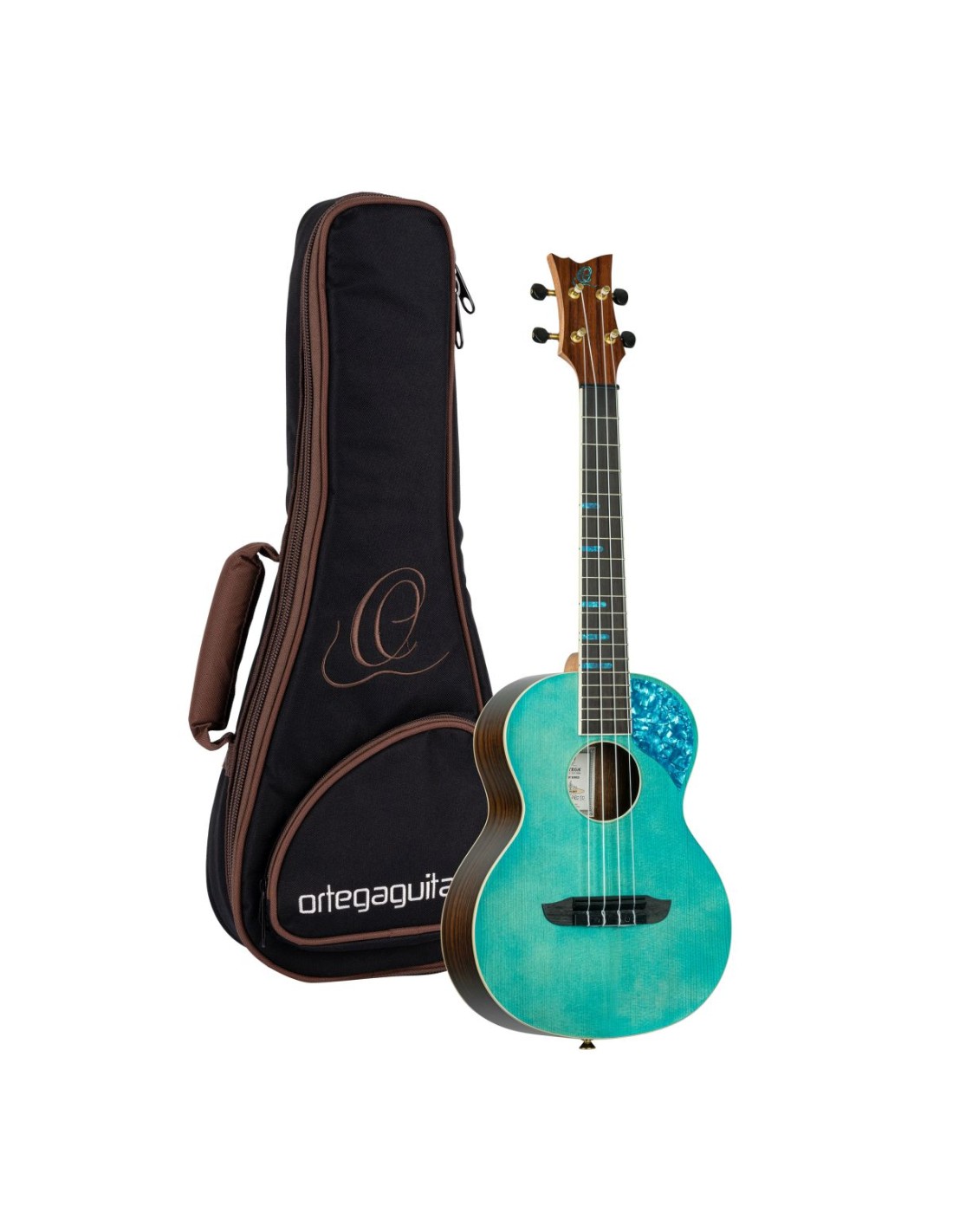 UKELELE 'El ukelele GHOST SERIES de Ortega Guitars cautiva con su llamativa tapa brillante. Las coloridas tapas (negro, océano, rojo teñido y platino) armonizan maravillosamente con el acabado brillante del fondo y los lados de Rosewood. En particular, este ukelele presenta impresionantes incrustaciones de ''barra'' de perlas azules y un golpeador de perlas azules, lo que agrega un toque de elegancia a su apariencia. La chapa del clavijero de palisandro complementa la estética general y completa el hermoso diseño del instrumento. Los instrumentos GostSeries vienen con la funda profesional Ortega Guitars. Tamaño: tenor. Ancho de tuerca: 35 mm (1,38”). Escala: 430 mm (16,93”). Tamaño tenor Tapa: Abeto macizo, acabado brillante Acabado: Océano Fondo y aros: Palisandro, acabado brillante Mástil: Caoba, acabado satinado Chapa del clavijero: Palisandro, acabado brillante Diapasón y puente: Palisandro Encuadernación: ABS blanco Cejilla y selleta: ABS negro Azul perla Incrustaciones de “barra” Golpeador “GHOST” perla azul Logotipo de Perla Azul Parte posterior arqueada Pasador de correa, dorado Escala: 430 mm (16,93”) Ancho de cejilla: 35 mm (1,38”) Funda profesional incluida'
