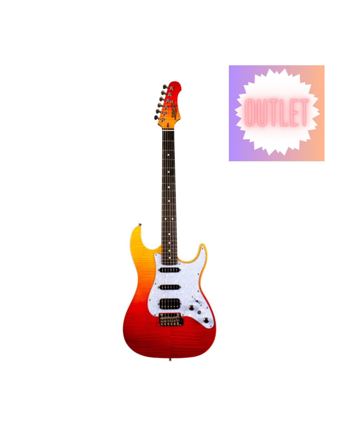 Tipo Modern Stratocaster. Mástil tipo C de arce Canadiense. Diapasón de ébano mixto.. Cuerpo de caoba con tapa de arce flameado. Cejuela diapasón de hueso. 2 pastillas dobles Alnico.. Selector de 5 posiciones. 1 control de volumen y 1 de tono. 22 trastes. Acabado rojo translúcido.