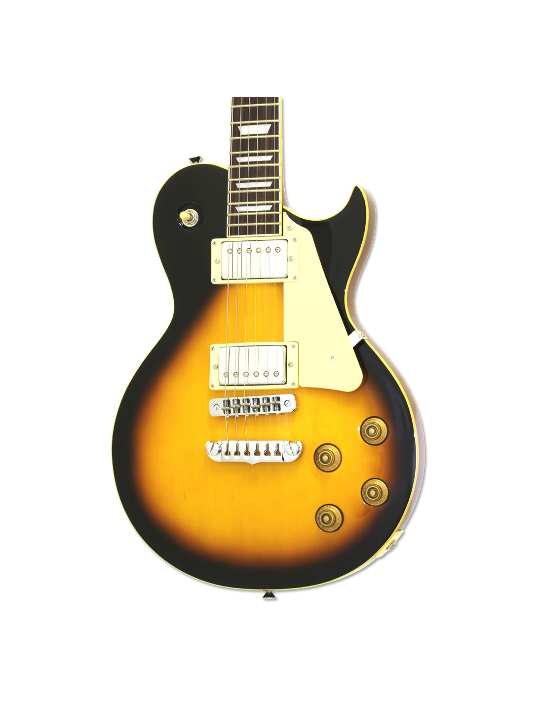 PE350STDAGSB TIPO LES PAUL Cuerpo: Tilo Macizo. Mástil: Caoba. Diapasón: Techwood. Pastillas: 2 Humbucking. Acabado: Sunburst envejecido. Las imágenes publicadas pueden diferir ligeramente del producto final.