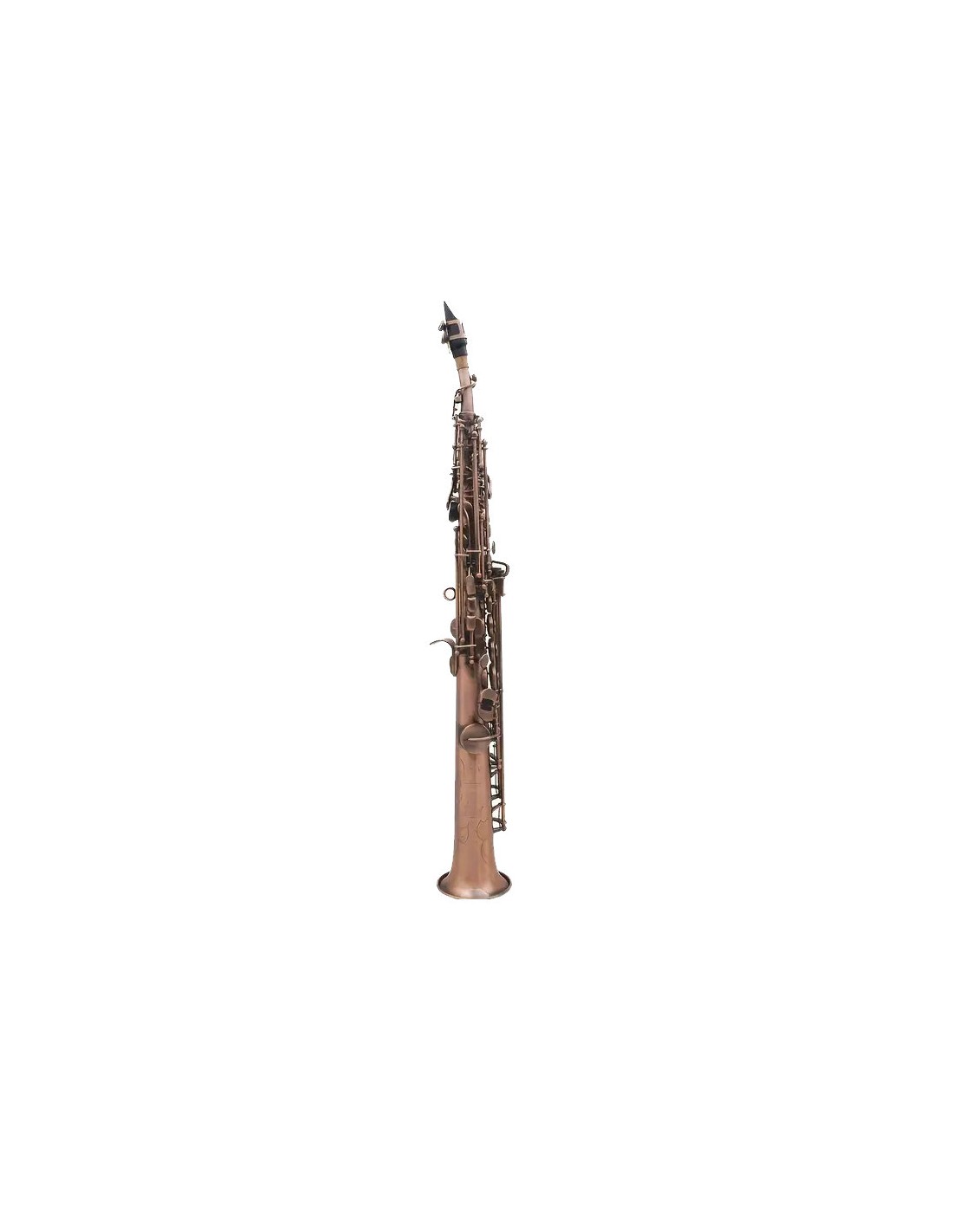 SS670 Saxo Soprano recto SI bemol. Lacado. Con llave de FA# agudo. Almohadillas y muelles Made in Italy. Acabado envejecido. Con estuche.
