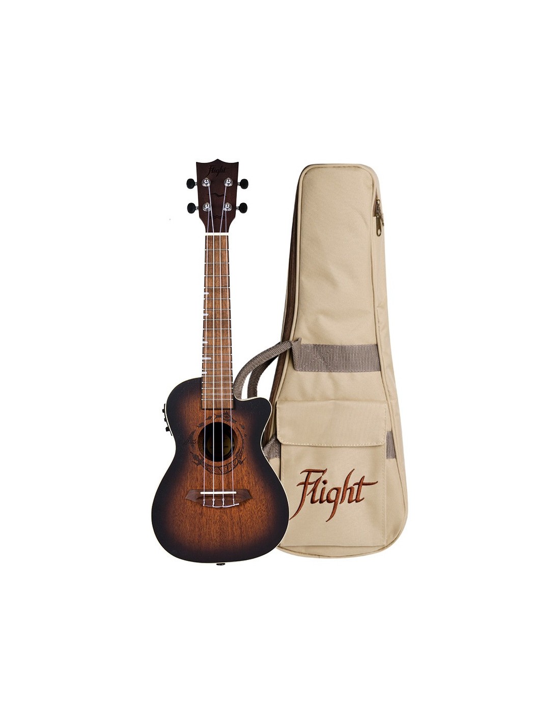 Su tamaño concierto le confiere lo mejor de dos mundos en un solo instrumento: la caoba le confiere un sonido cercano al soprano, la escala y el cutaway le otorgan una comodidad similar al tenor. Añadiéndole a la mezcla un piezo eléctrico tendrás el ukelele perfecto para tocar en soledad o frente a grandes multitudes. Tú eliges.